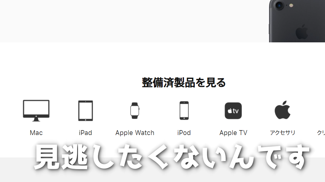 といった感じで「型落ちでもかまわないので とりあえず新品同様のApple 製品が欲しい」って方は、定期的にチェックしておけば思わぬ掘り出し物に出会えるかもしれません。