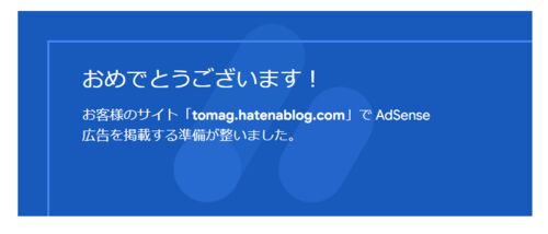 特に苦労はしてないんですが違う意味で長い道のりでした… 無事にはてなドメイン(https://tomag/hatenablog.com)でGoogle Adsenseの審査に一発通過いたしました~ 申請したのは2月1日 合格の条件的なアレって? まとめ 申請したのは2月1日 独自ドメイン…