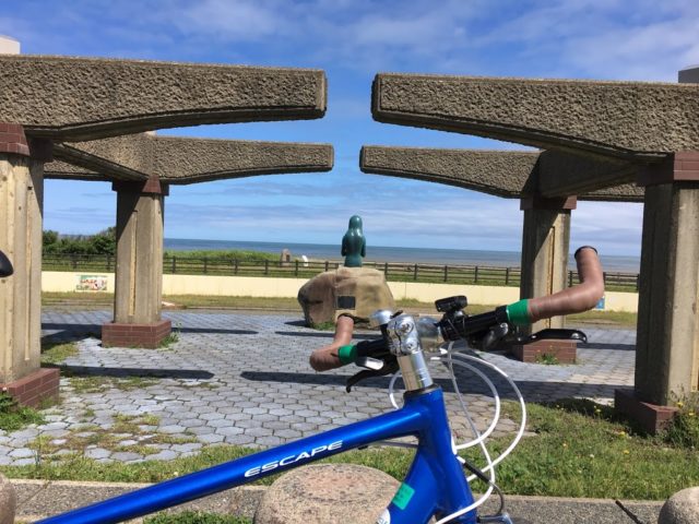 自転車乗りであればご存知のろんぐらいだぁすの亜美ちゃんたちも訪れた聖地巡礼ということで、船見公園の人魚像の前でパシャリ!