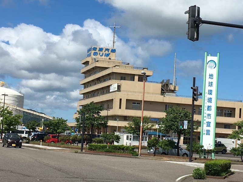 ということで50km西を目指して出発。 昨日は雨模様でしたが、今日の天気予報は「降水確率0%」 多少雲はあるものの直江津港も青空に映えて美しいです。