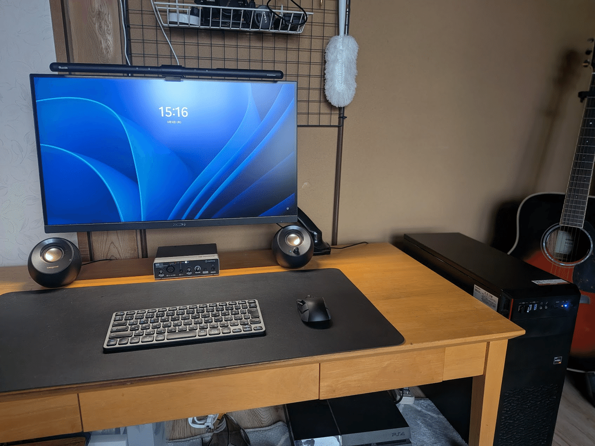 対してデスクトップPCは、本体をデスク横や足元に配置すれば、机の上は「モニターとキーボードだけ」という究極にミニマルな環境が手に入ります。ガジェットブロガーとしては少し寂しいほどにスッキリしてしまいました(笑)。
