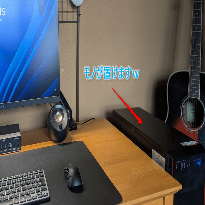 A3:今回のように、デスク横に本体を配置するスタイルがおすすめ。机の上を占領しないため、実はノートPCよりも圧迫感が少ない場合もあります。
