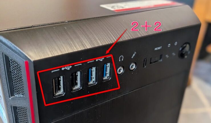 さらにフロントパネルにも4個のポートが配置されています。これぞデスクトップの醍醐味ですね。