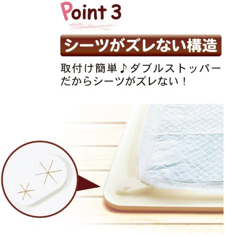 「※」型の穴が空いていて そこにおしっこシーツを挟んで固定するタイプ。いわゆる「被せる部分」がないので 段差はトレー部分の7mmだけ。