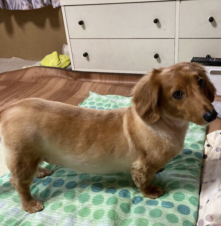 ちなみに我が家のゆずさん。ダックスフントにしては手足が長め。おまけに後ろ足が長めなので 基本的には前足荷重のワンコなんですね。