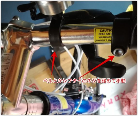 そのままだと、たぶんバーを装着するスペースがないのでベルやシフターを数センチ内側に移動します。