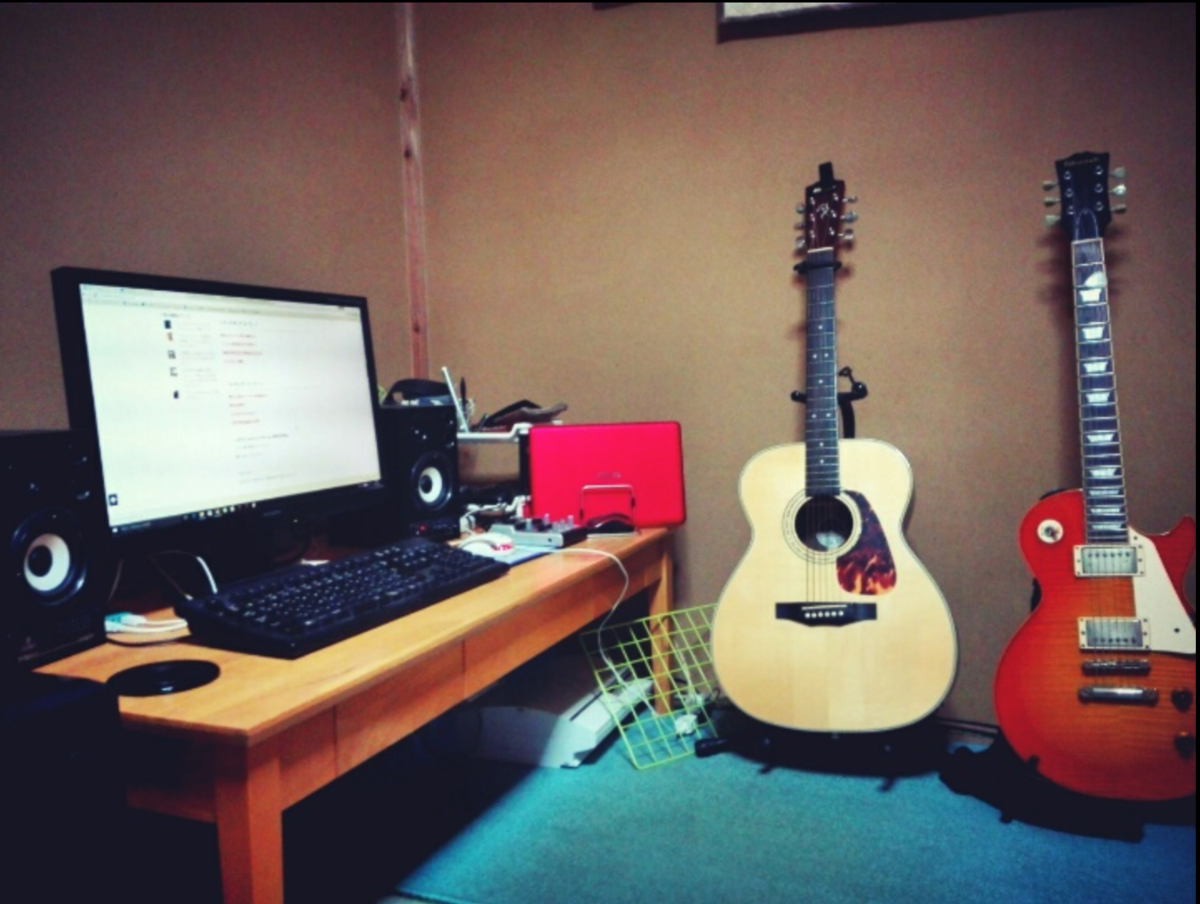下手の横好きってやつですが我が家にはアコギもエレキギターもありましてですね。