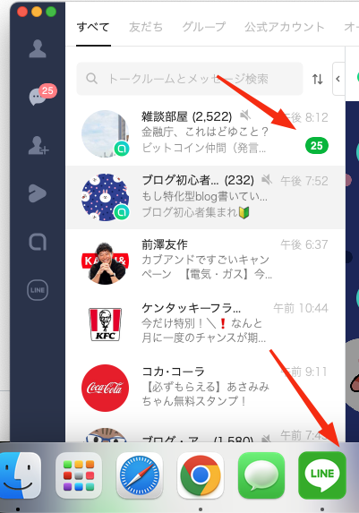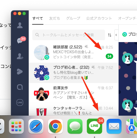 あれ? 確かMacのLINEってさ。DOCKのLINEアイコンの右肩に未読数が表示されなかったっけ?