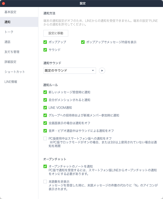 ポップアップとかサウンドの設定はあるものの未読数に関する設定はなし!!