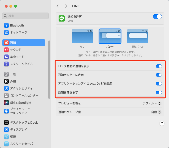Windowsの場合って大体の設定はアプリ側で行う場合がほとんどですが、Macの場合はiPhoneなどと似ていて通知などは「システム側」で設定する場合も多いようです。