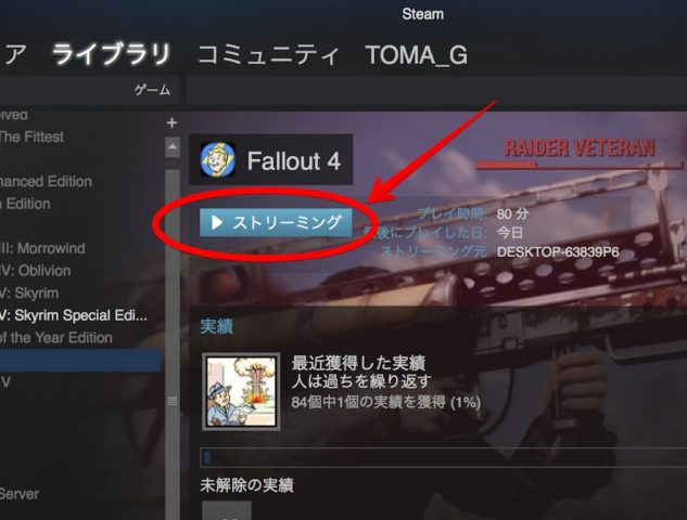 もちろんゲームを起動するデスクトップPCも起動して、Steamを起動しておきましょう。