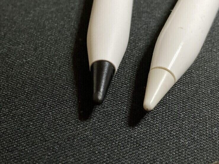 左が今回購入した「ソフトタッチ芯」を第二世代のPencilに装着した状態でございます。