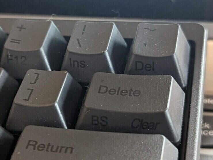 背面のディップスイッチをいじっていないデフォルト状態だと いわゆる削除キーが「Delete」なんですよね。