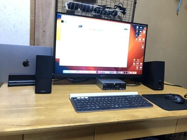 USB接続の機器が多くてもハブ経由でMacにUSB-C一本つなげば使えるようなセッティングになっているんで接続も楽ちん!