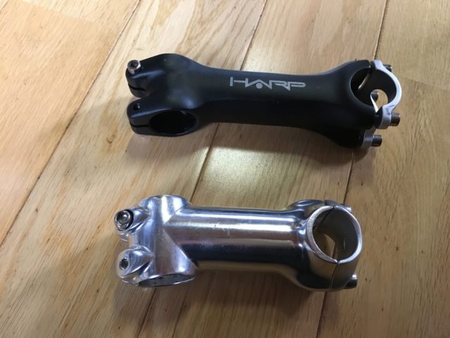 ということで、ステム反転で得られる「落差」はだいたい「ハンドルの太さ一本分」くらいといった感じです。