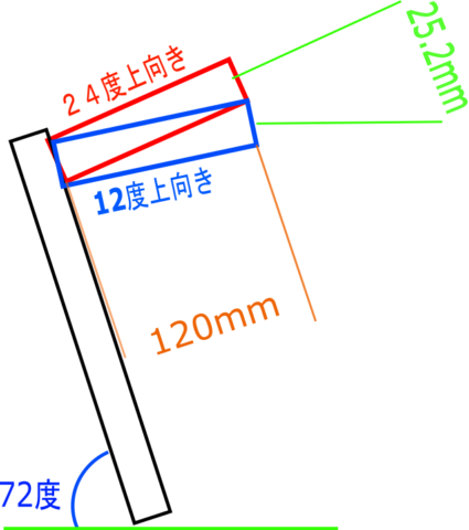 そこらへんの数値を三角関数に当てはめて計算してみると以下の図のとおりとなりました。