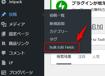 サイドバーの投稿部分から Bulk edit Fieldsを選びます