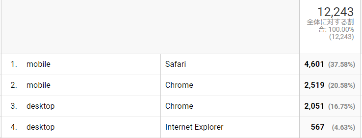 せっかく色んなリンクを紹介したりアフィ案件を貼っていても「Chrome」の訪問者だと機会損失してしまっている可能性があるということですね。