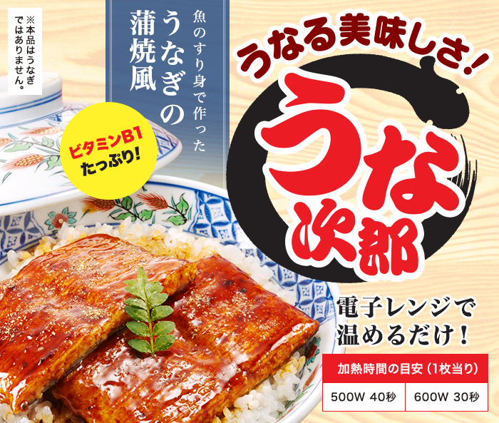 「ほとんどうなぎ!!」ってフレーズしか頭に入ってこなかったので、とりあえず「ほとんどうなぎ!」でぐぐってみたところ、この商品が「うな次郎」であることが判明。
