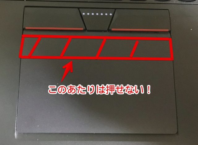 あともう一つ。5ボタンタッチパッドの場合、構造上、ボタンの直下部分だけは押し込めない部分がありますのでご注意ください。
